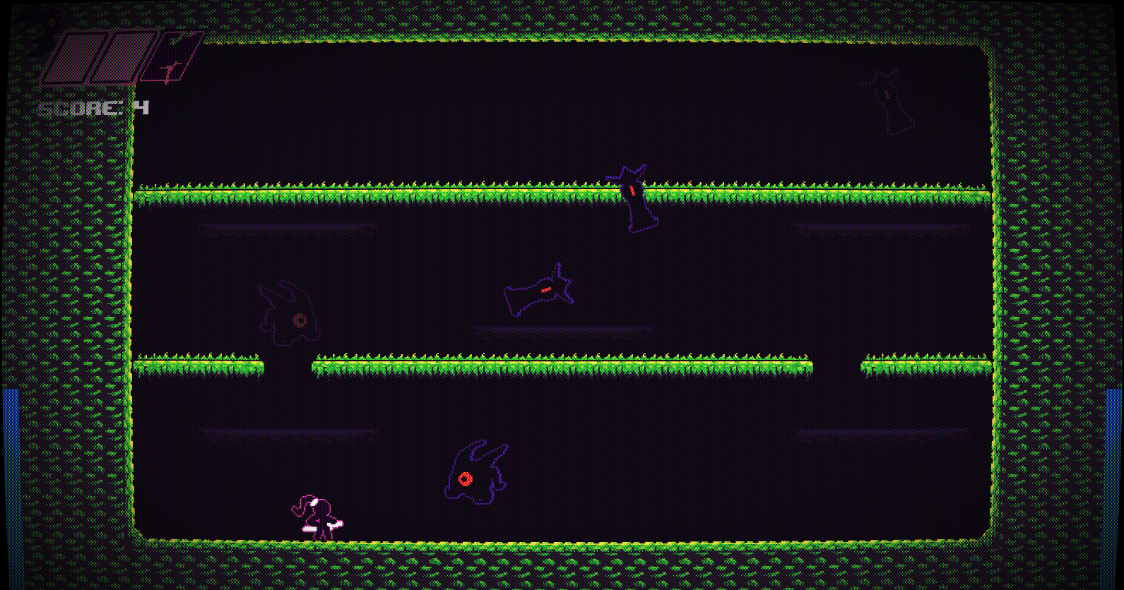 Um jogo estilo arcade em que você deve derrotar monstros e conseguir a maior pontuação possível, enquanto é enviado através de dimensões paralelas.